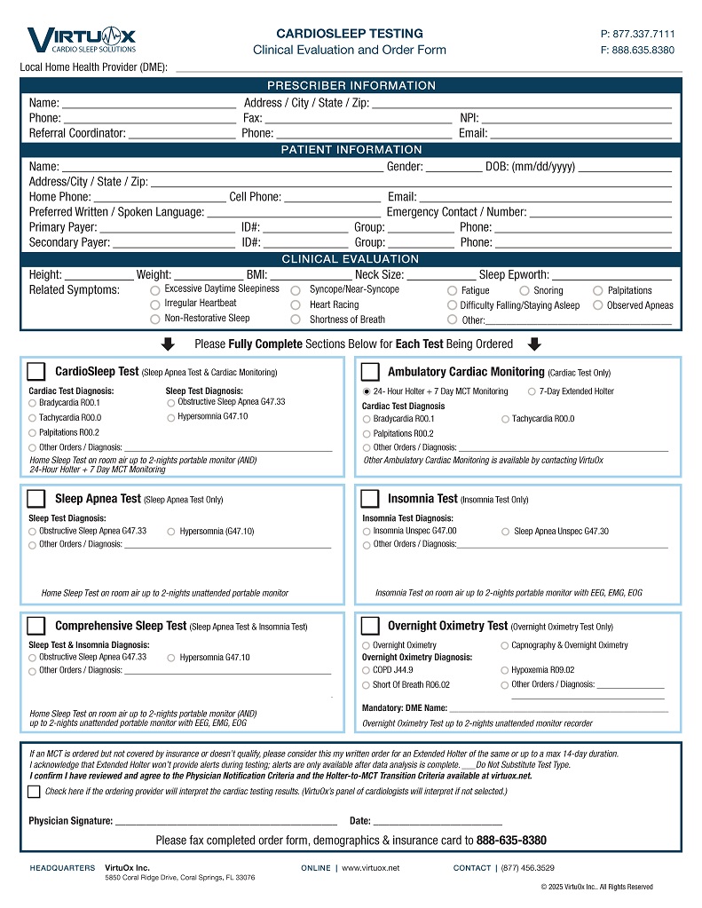 VirtuOx is a Joint Commission approved, Medicare certified, Independent Diagnostic Testing Facility (IDTF) that performs over 40,000+ new diagnostic tests each month in the patient’s home that consists of: